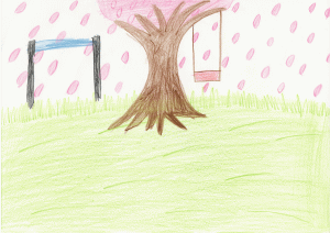 うちのお姉ちゃんは木の枝がブランコになっている絵をよくかきます。乗ってみたいんでしょうね〜。さくら、満開です。